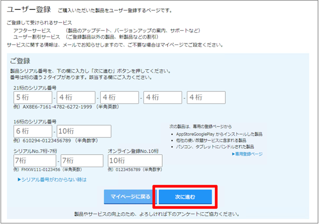 3. 製品登録が完了するまで進めてください。