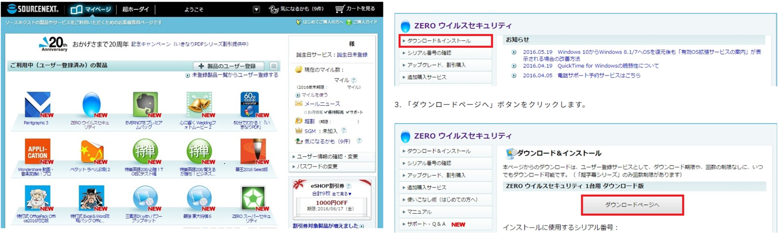 1. ソースネクストのユーザー登録(未登録の場合)またはログインを行います。