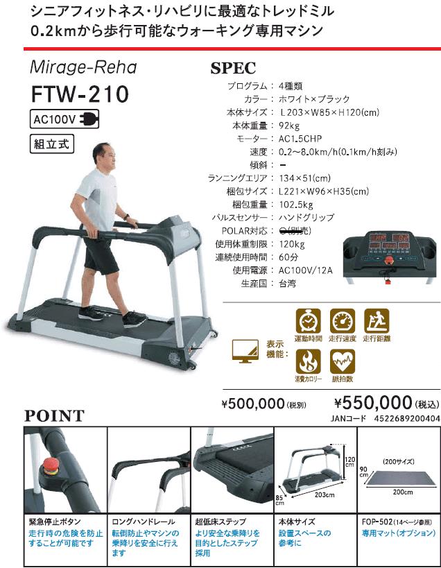 ■フジモリ FTW-210 Mirage Reha トレッドミル 電動ウォーカー 準業務用