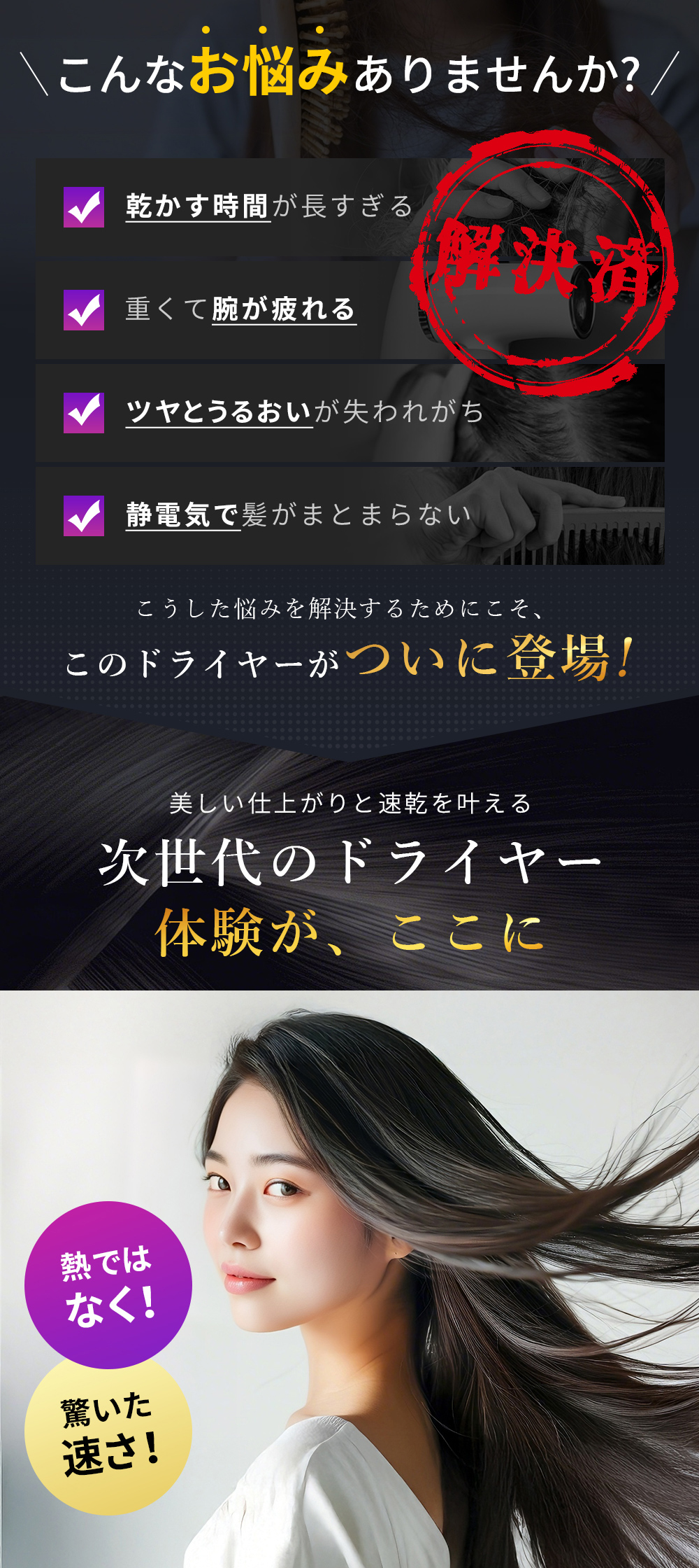 指通りなめらかなツヤ髪へ導きます。