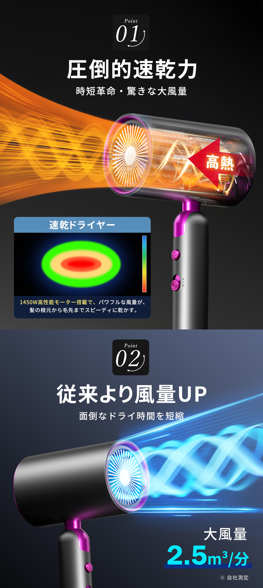 ドライヤー 【母の日セール 3,980円→3,280円】 ヘアドライヤー 折りたたみ マイナスイオン 2.58億個 温度制御 温度&風量調節 大風量 1450W 軽量 306g 静音