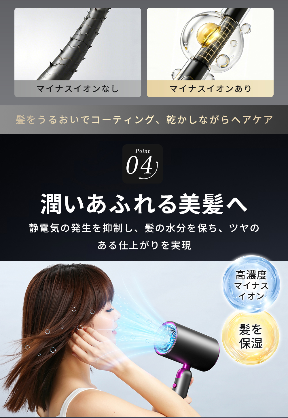 【2億5,800万個/cm3 高濃度マイナスイオン】