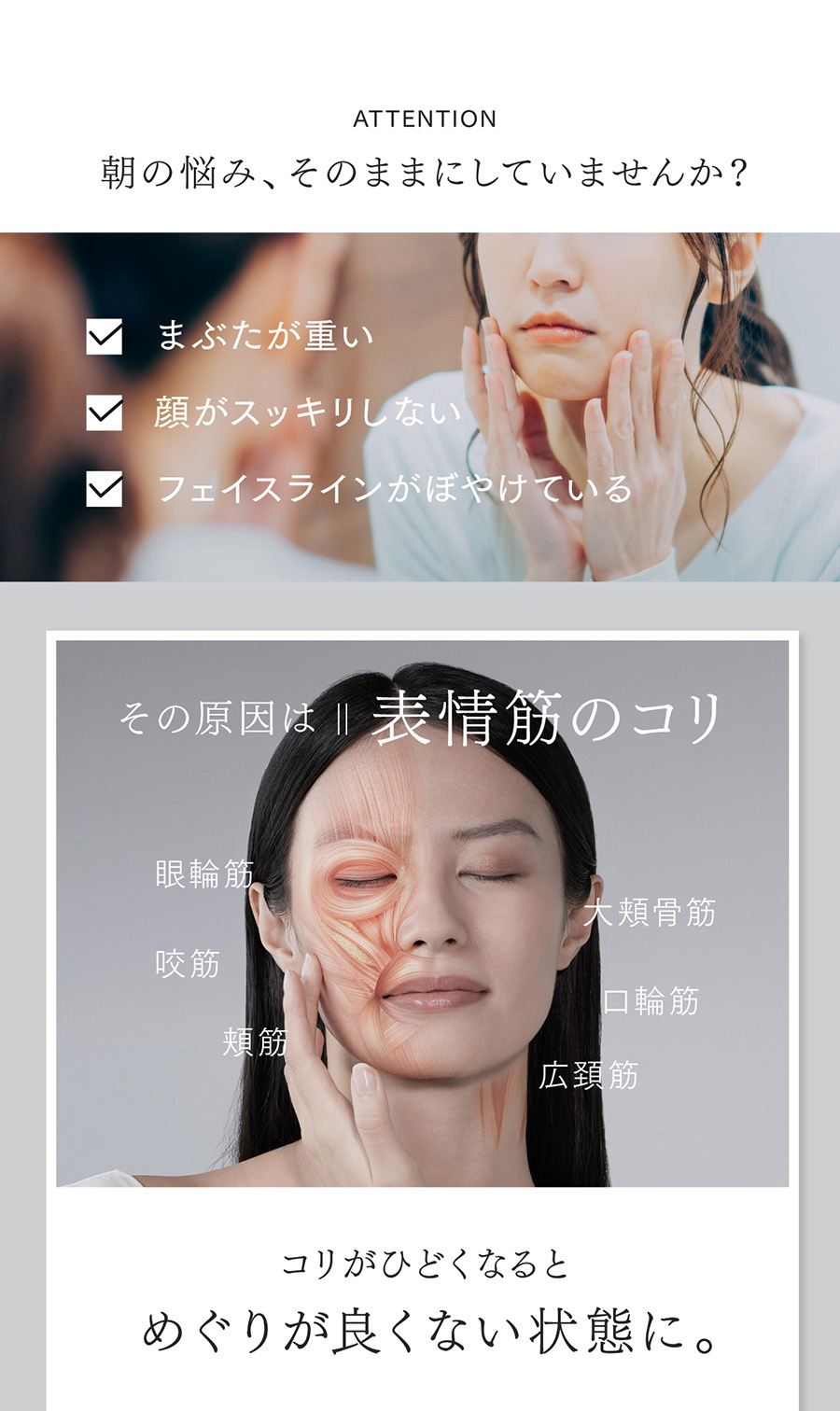 □表情筋を的確に刺激筋肉のコリをほぐす