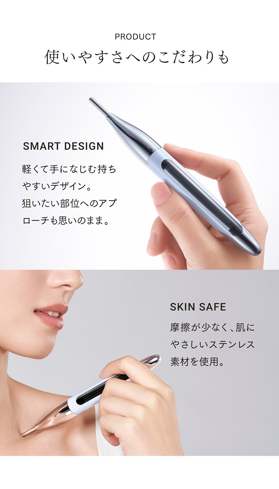 あらゆる部位を最適な強さで刺激し、痛みなく表情筋の深部まで的確に刺激