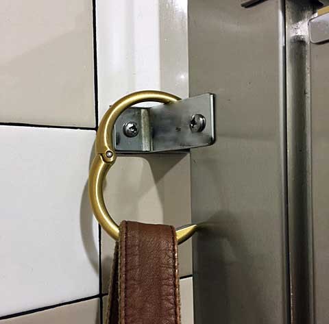 万が一トイレに引っ掛ける場所すら見つからなかったとしても、個室の仕切りに吊るすことができます。