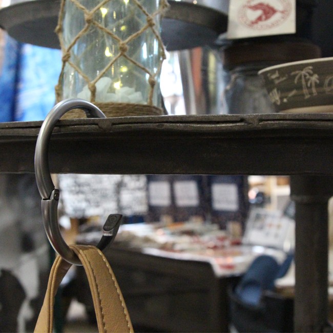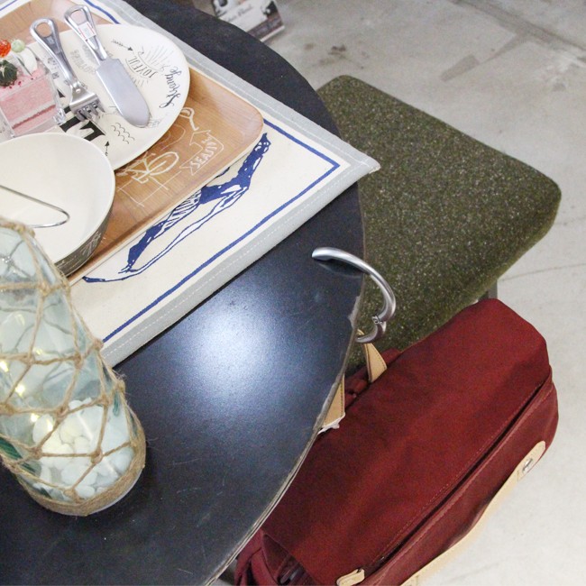 買い物バッグなど多くの荷物をまとめて一箇所に引っ掛けることができるので、カフェなどで休憩するときなどにとても便利です。