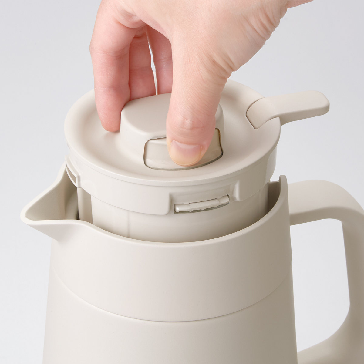 簡単に素早く着脱できるワンタッチふたを採用しました。手指の大きさにかかわらず開閉レバーがつまみやすいよう、すっきりとしたデザインに仕上げました。