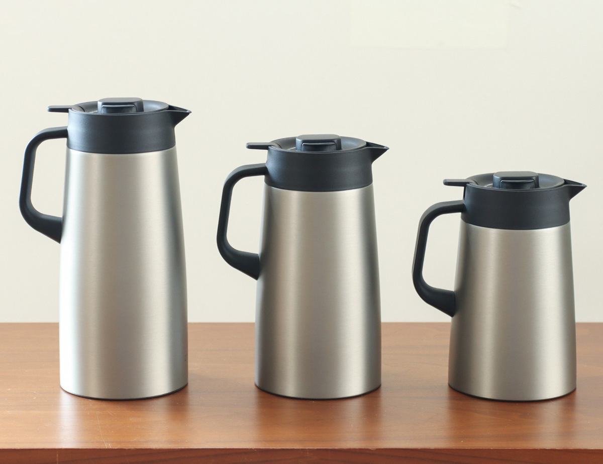 軽くて丈夫なステンレス製の真空二重構造により、高い断熱効果を発揮し、入れたての温度を長時間保ちます。朝入れたコーヒーやお茶はお昼になっても飲みごろの温度をキープし、電気を使わず省エネで、ダイニングやリビングでゆっくりと飲み物を楽しめます。