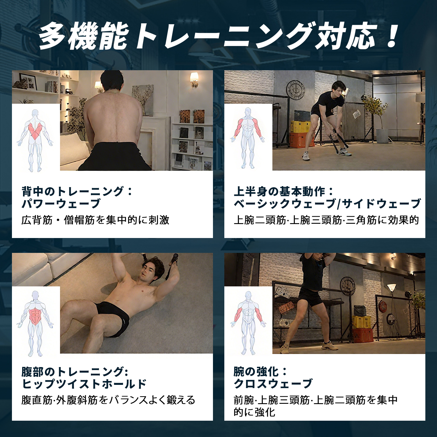 ベーシックウェーブからクロスウェーブまで、上半身の筋肉をバランス良く強化。
