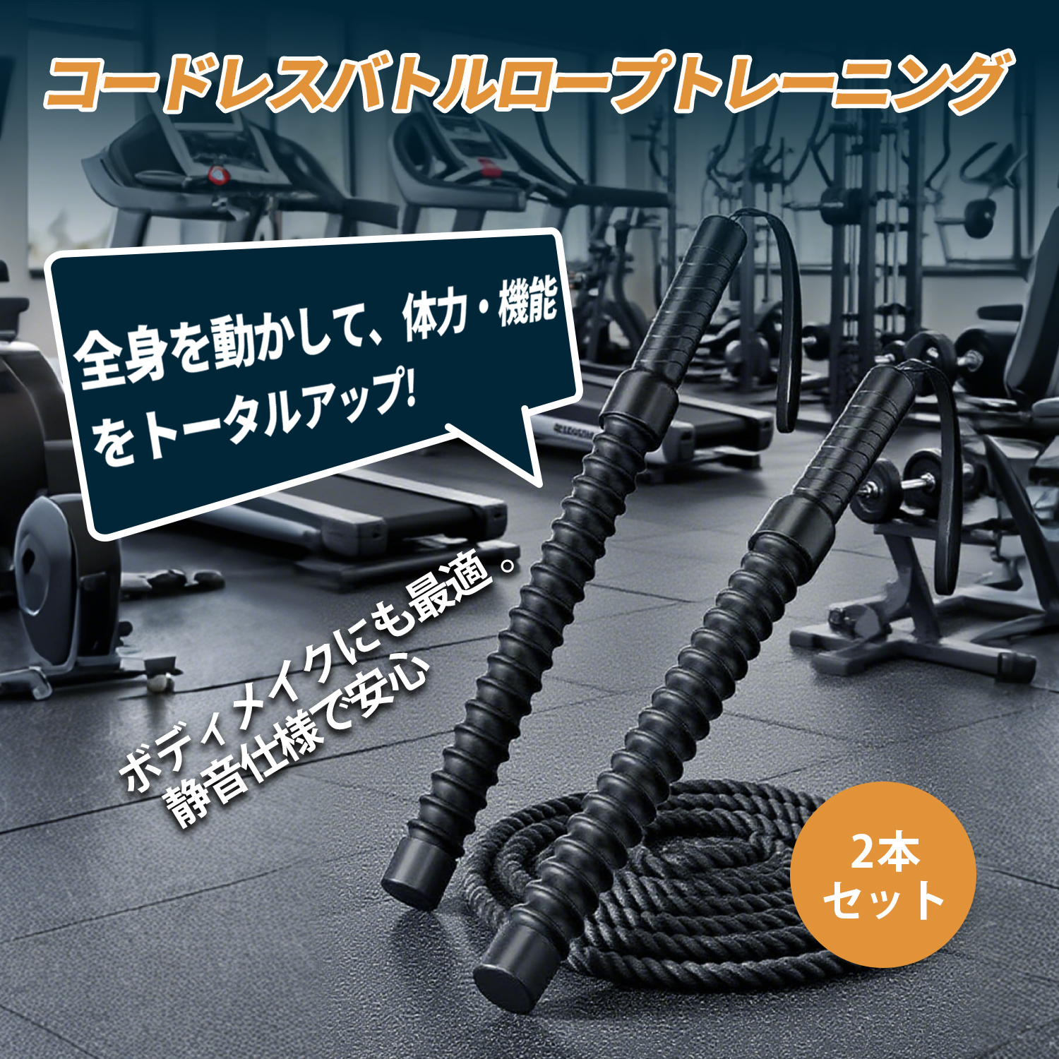 【2本セット】携帯型 コードレスバトルロープ 自宅用 バトルロープ 筋トレグッズ ポータブル ワークアウトロープ