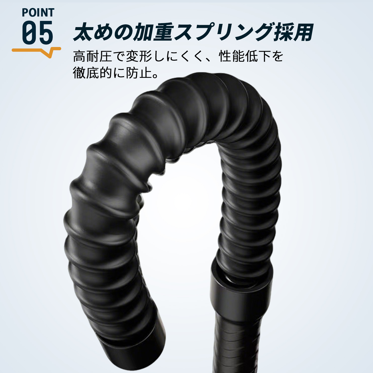 肉厚スチールパイプと高精度スプリングを採用し、変形しにくく性能低下を防止。