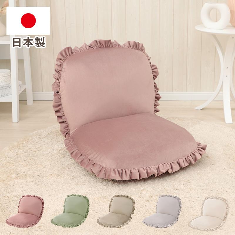 座椅子 リクライニング フリル ベロア コンパクト 日本製 おしゃれ 上品 高級...