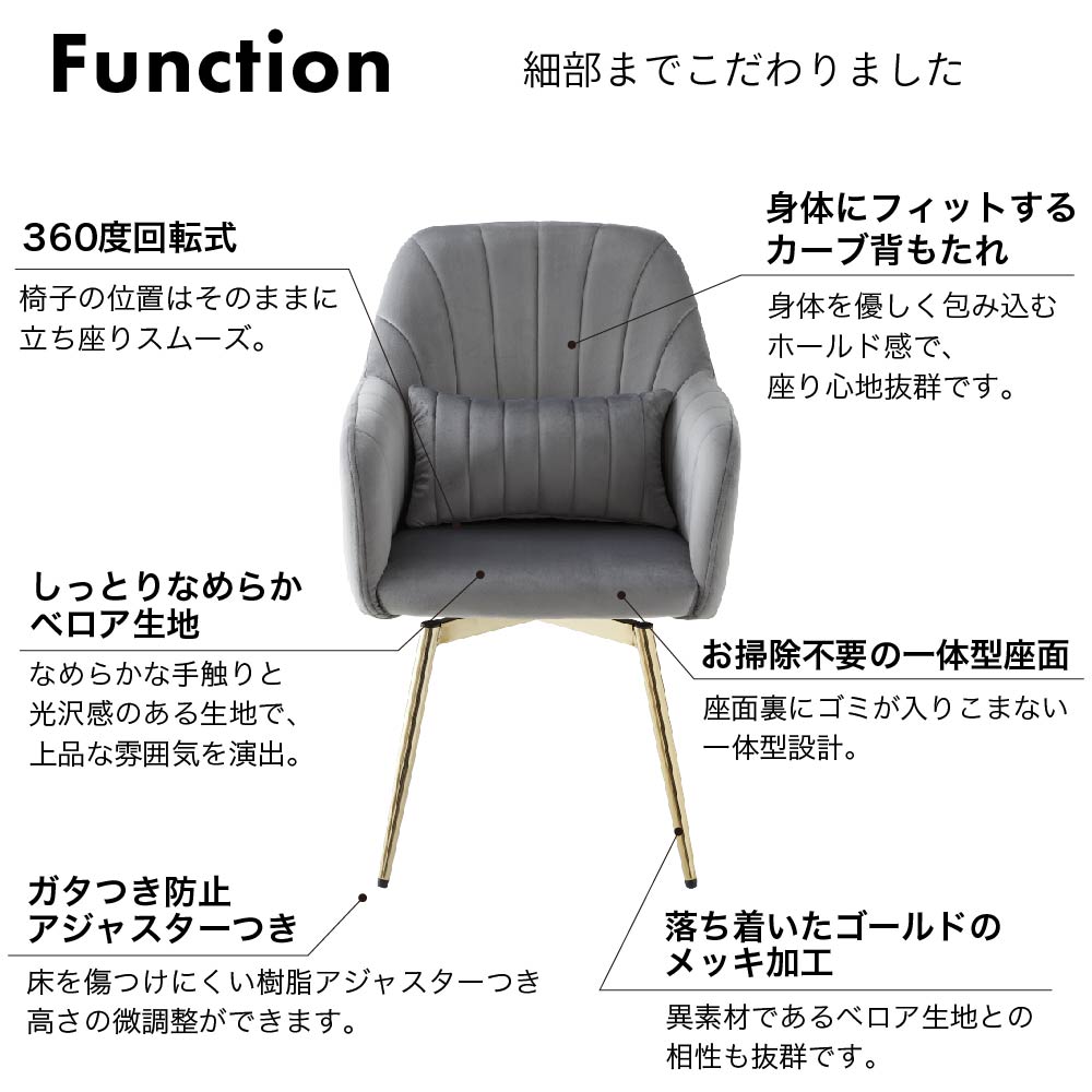 ダイニングチェア 肘付き 回転 肘付 おしゃれ 疲れにくい 金脚 ゴールド 回転チェア ダイニング チェア ベロア