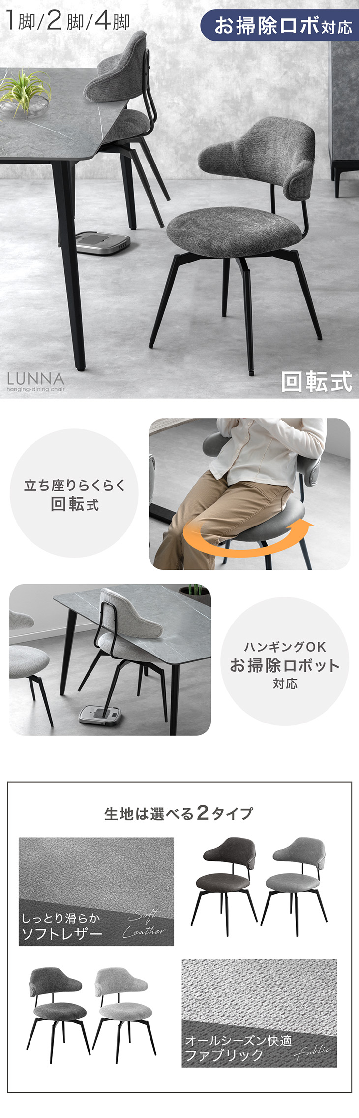 3日+5% ダイニングチェア 2脚 回転 おしゃれ 回転式 北欧 肘付き チェア お掃除ロボット 回転椅子 ファブリック レザー 椅子