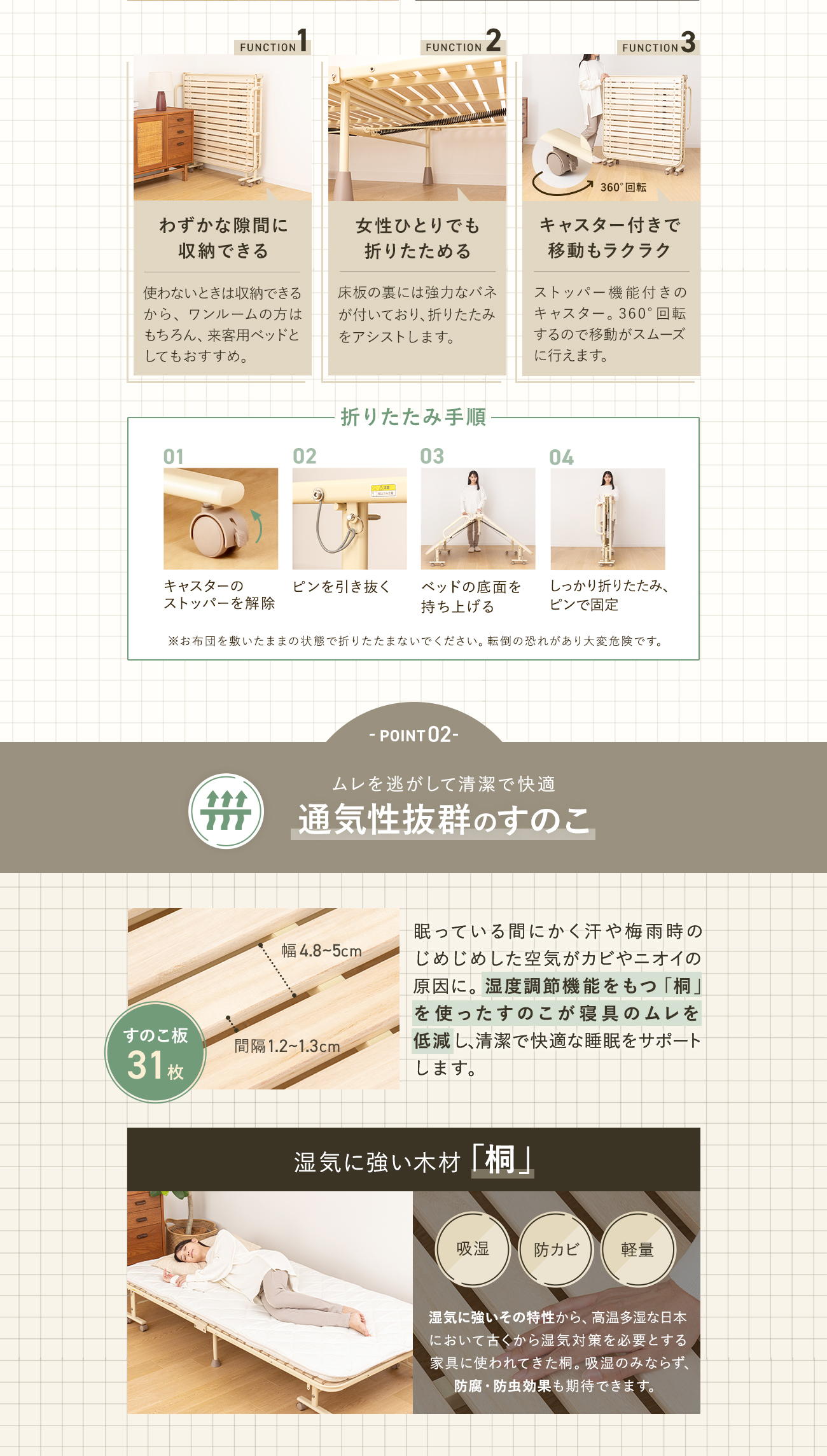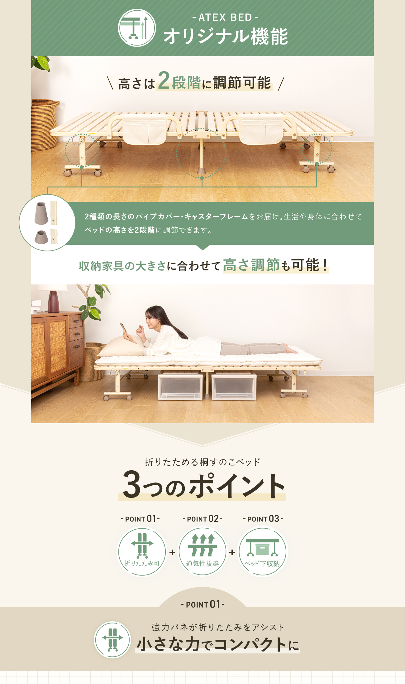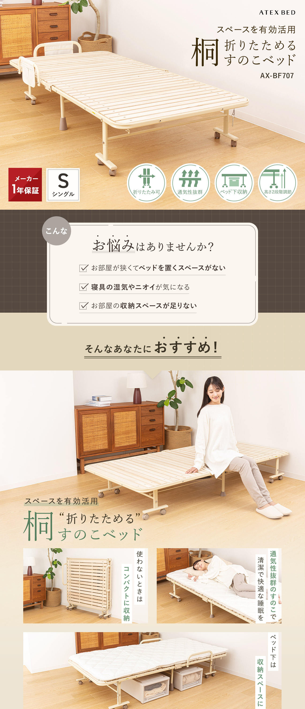 【公式店】 折りたたみベッド すのこベッド シングル 収納式 桐すのこベッド AX-BF707 無垢 フラットベッド 高さ調節 2段階 ベッドフレーム - ショッピング・ショップ | 通販検索