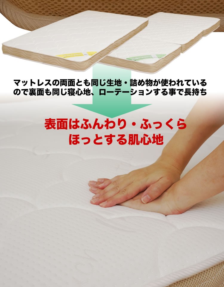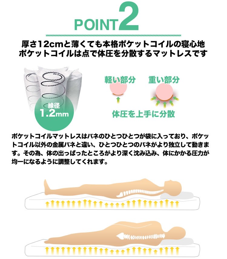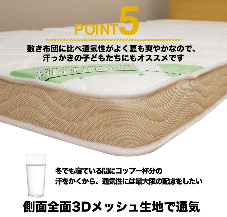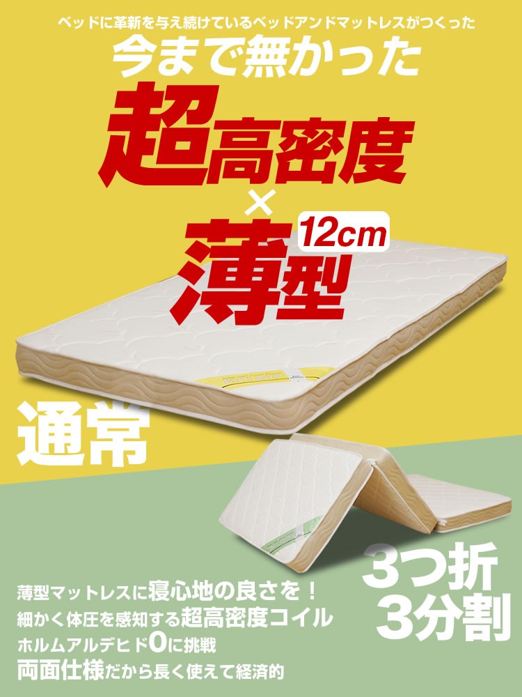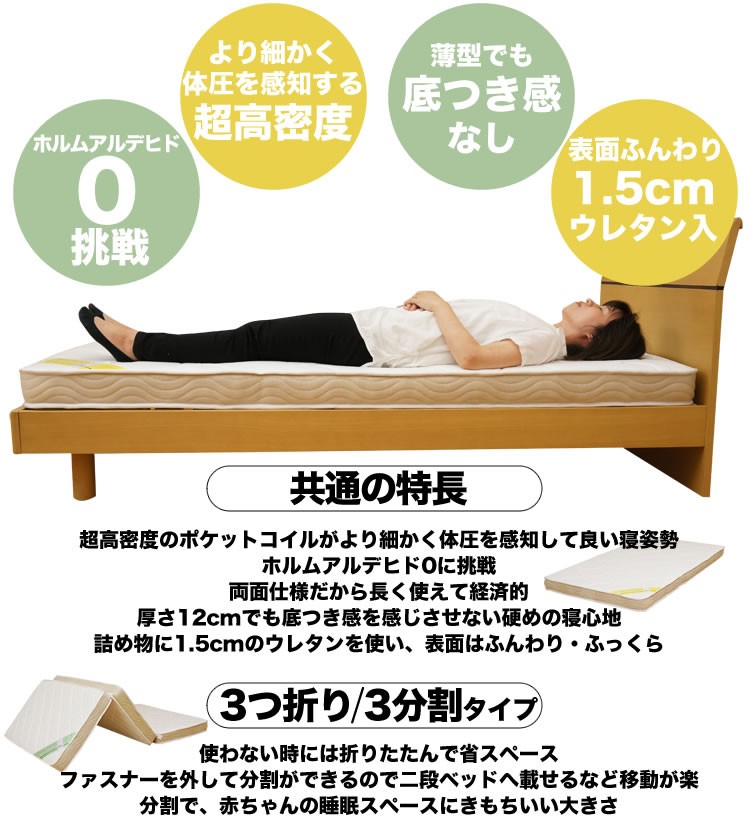 超高密度 薄型ポケットコイル 厚さ12cm マットレス シングル (通常/三つ折り) EN120P/EN120P3 2段ベッド