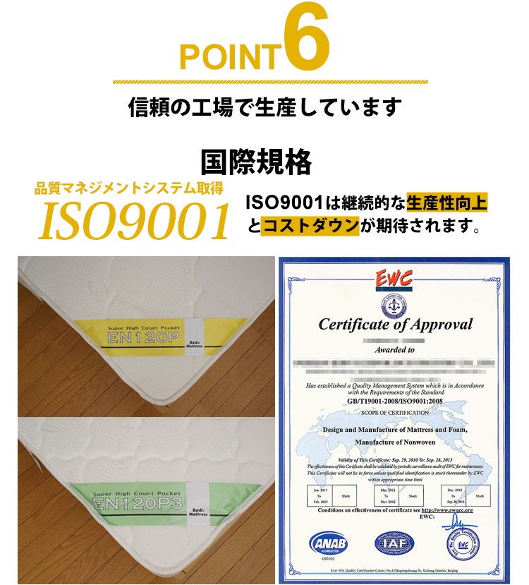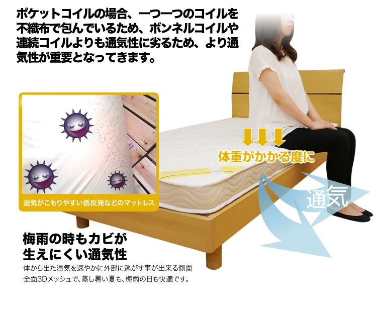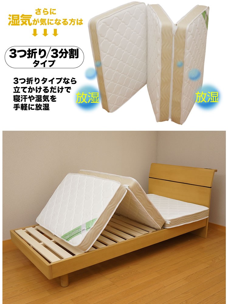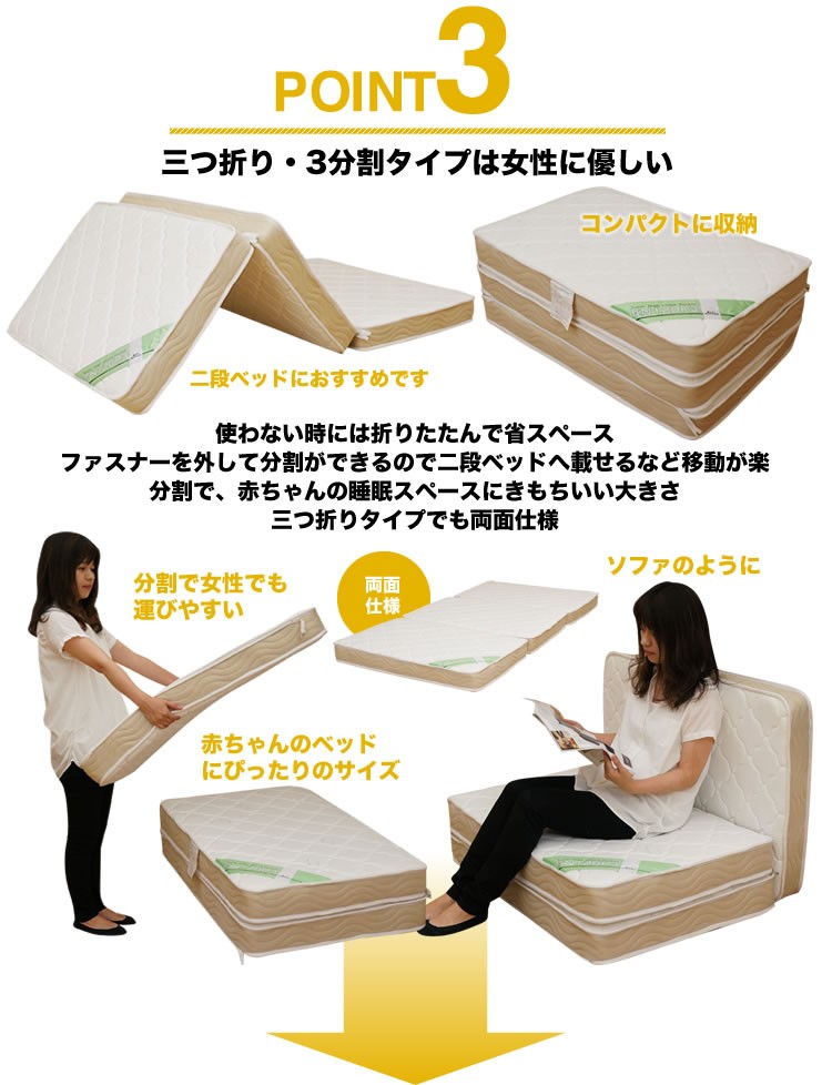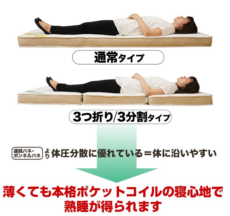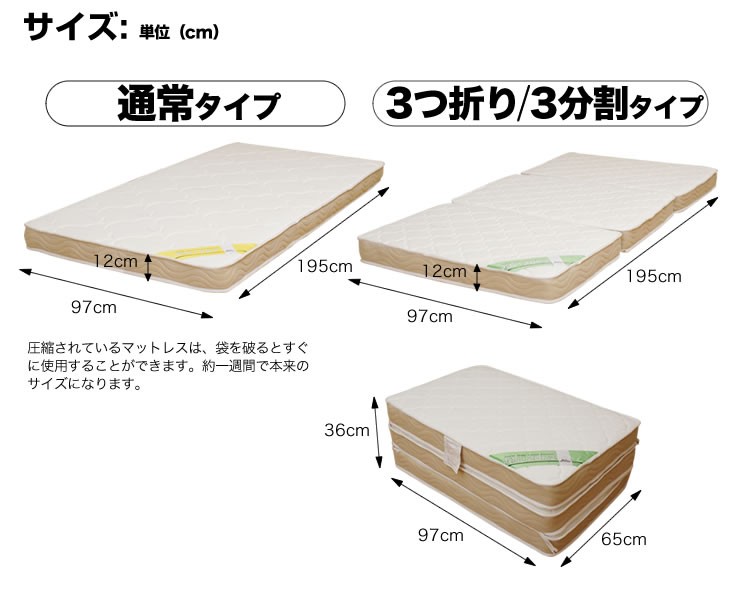超高密度 薄型ポケットコイル 厚さ12cm マットレス シングル (通常/三つ折り) EN120P/EN120P3 2段ベッド