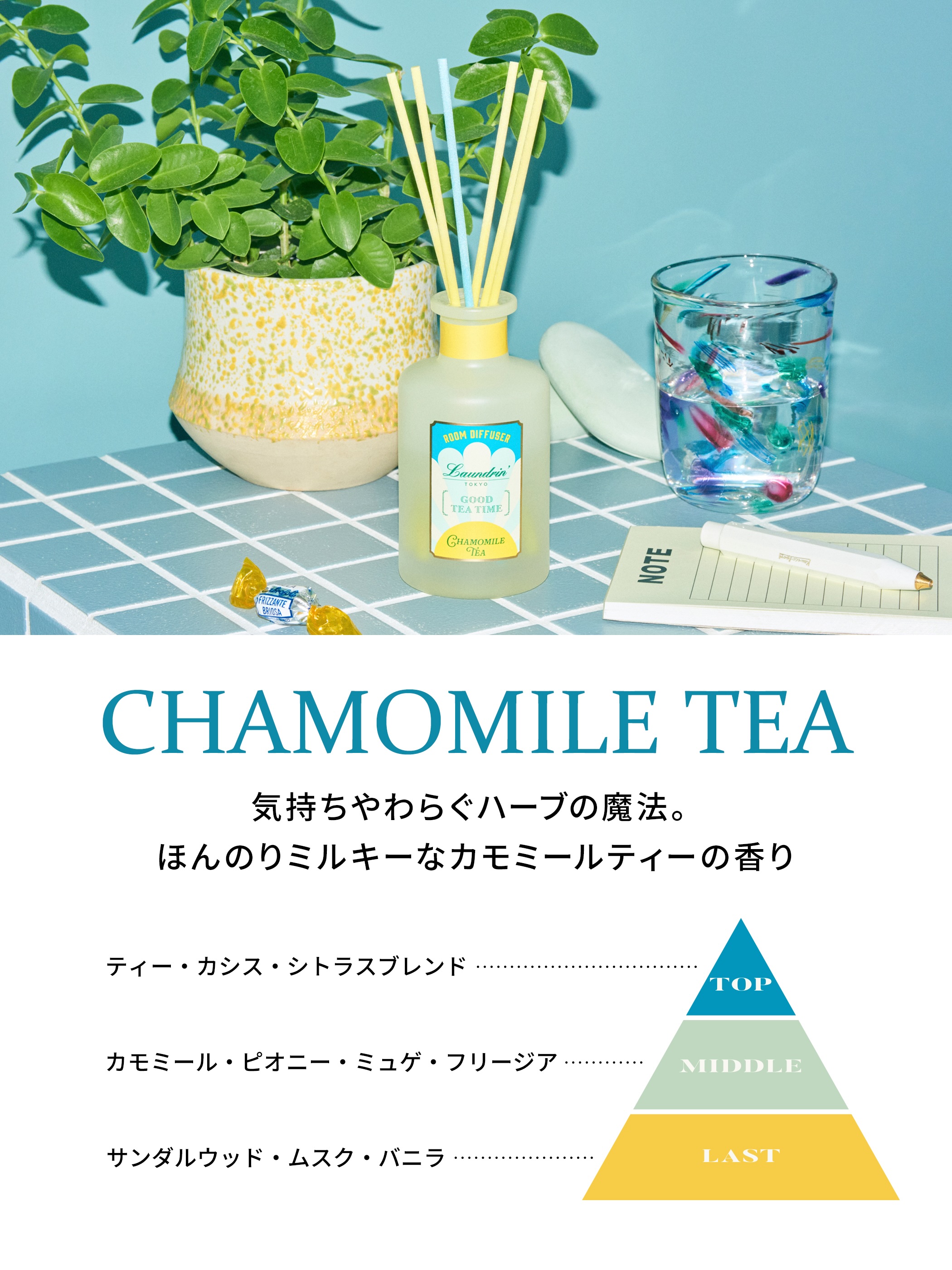 摘みたてのカモミールとほんのりミルキーな優しさで、心がほっと安らぐカモミールティーの香り。【カモミール・ミュゲ・ムスク】