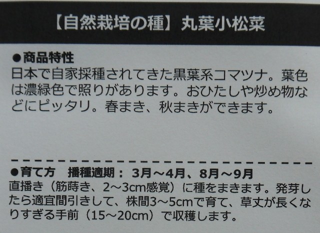 有機種子 固定種 丸葉小松菜 自然栽培の種 コマツナ 0.5g 2026年11月期限