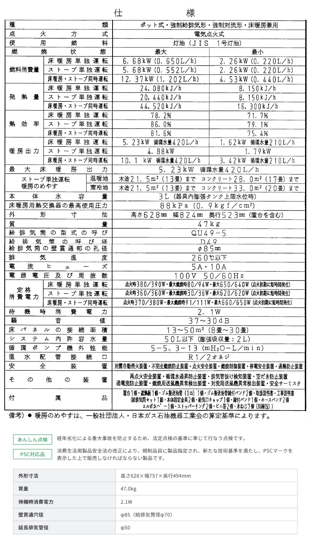 ・セット内容:本体+専用給排気筒 QU49-5(別梱包)