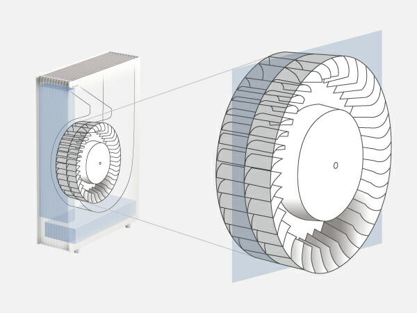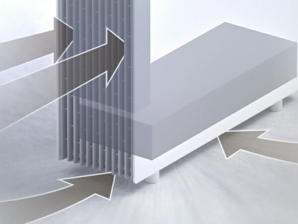 スリムかつ大口径のファンで、左右から効率よく吸引。