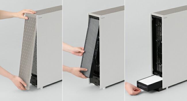 お手入れは、すべて前面から。本体を動かさずに、フィルターのお掃除がスムーズに行えます。