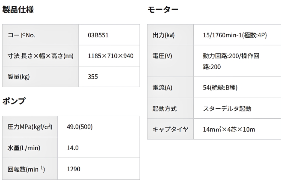 ■商品名:モーター式高圧洗浄機 超高圧型・大水量型