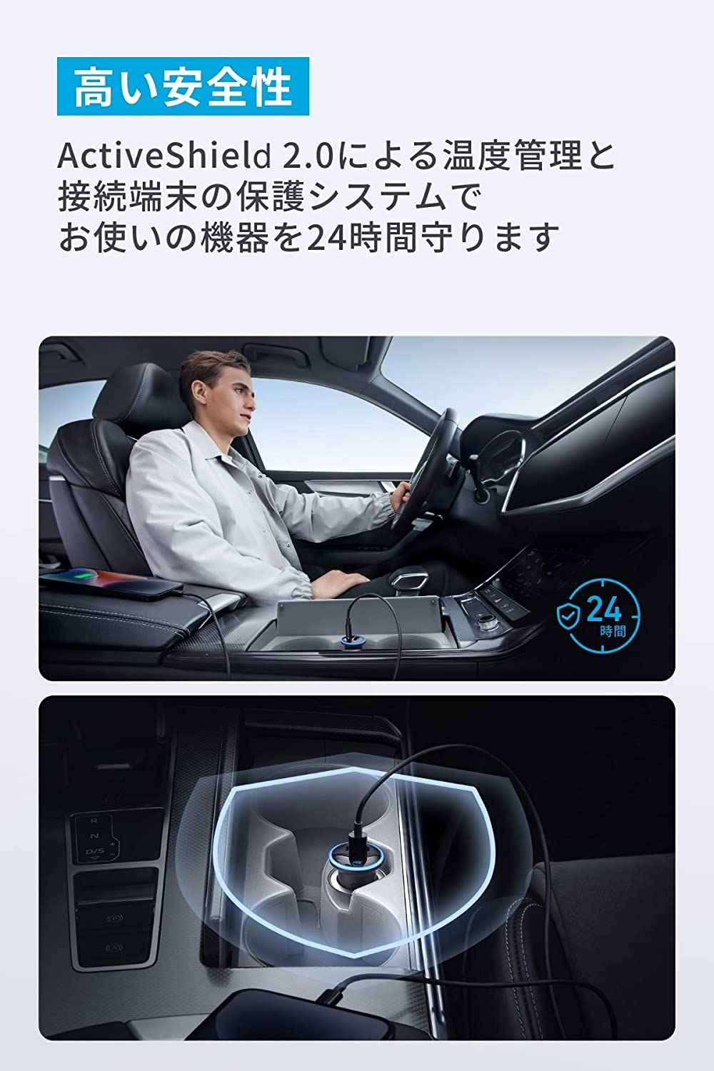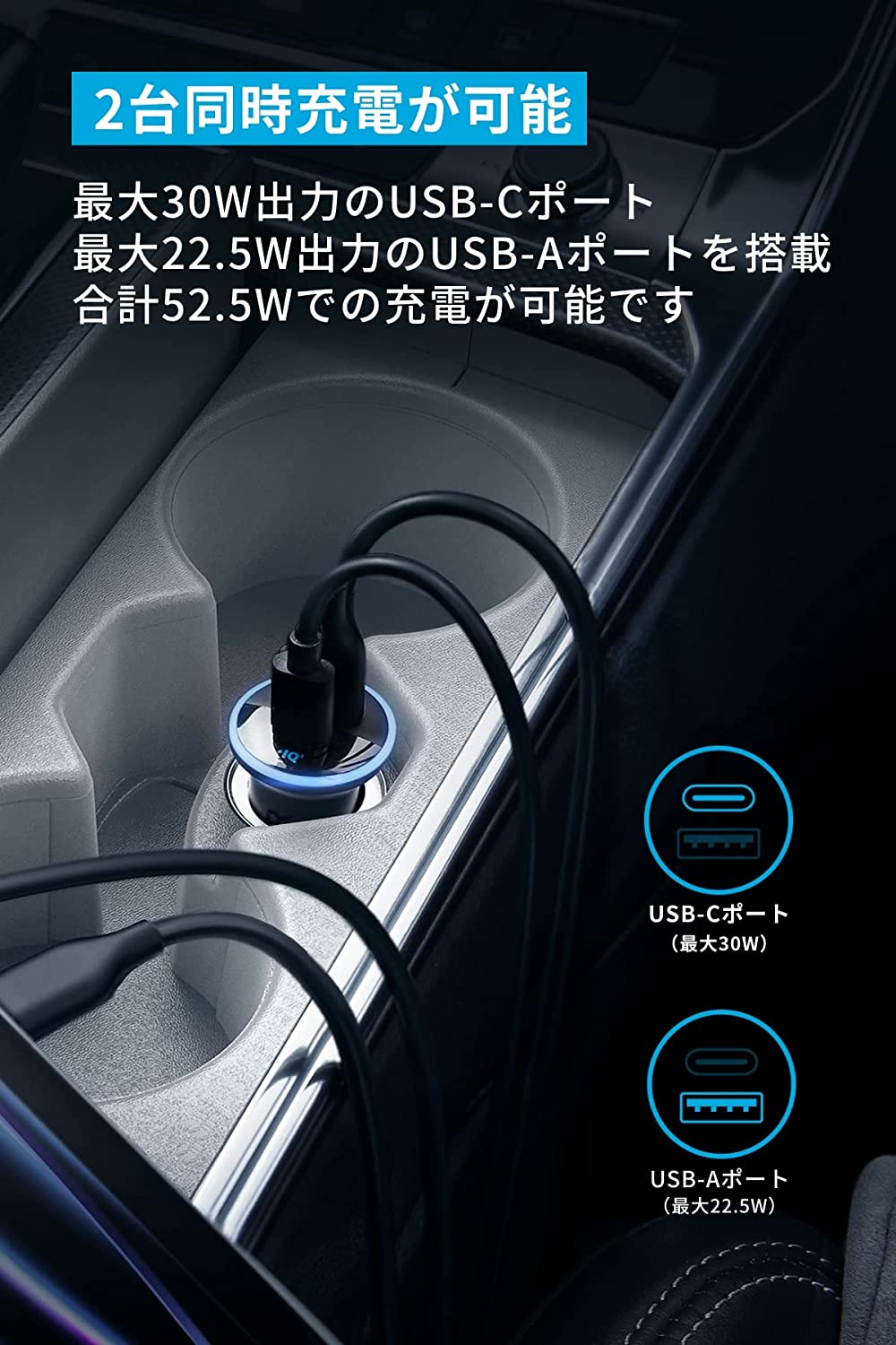 Anker アンカー 2台同時急速充電が可能。合計52.5W出のカーチャージャー