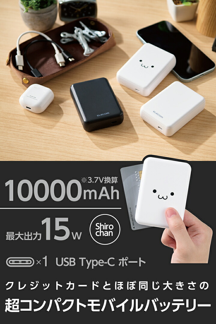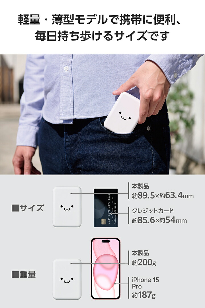 ■小さくて軽く、持ち運びにぴったり。15W出力、容量10000mAhのコンパクトなモバイルバッテリーです。