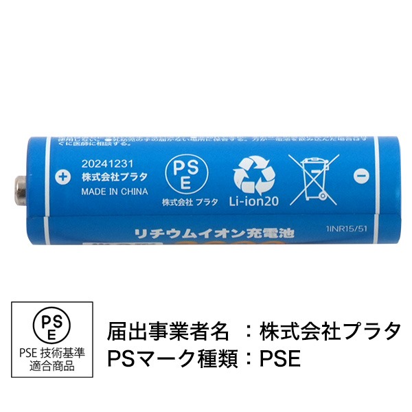 単3形リチウムイオン充電池 製品仕様