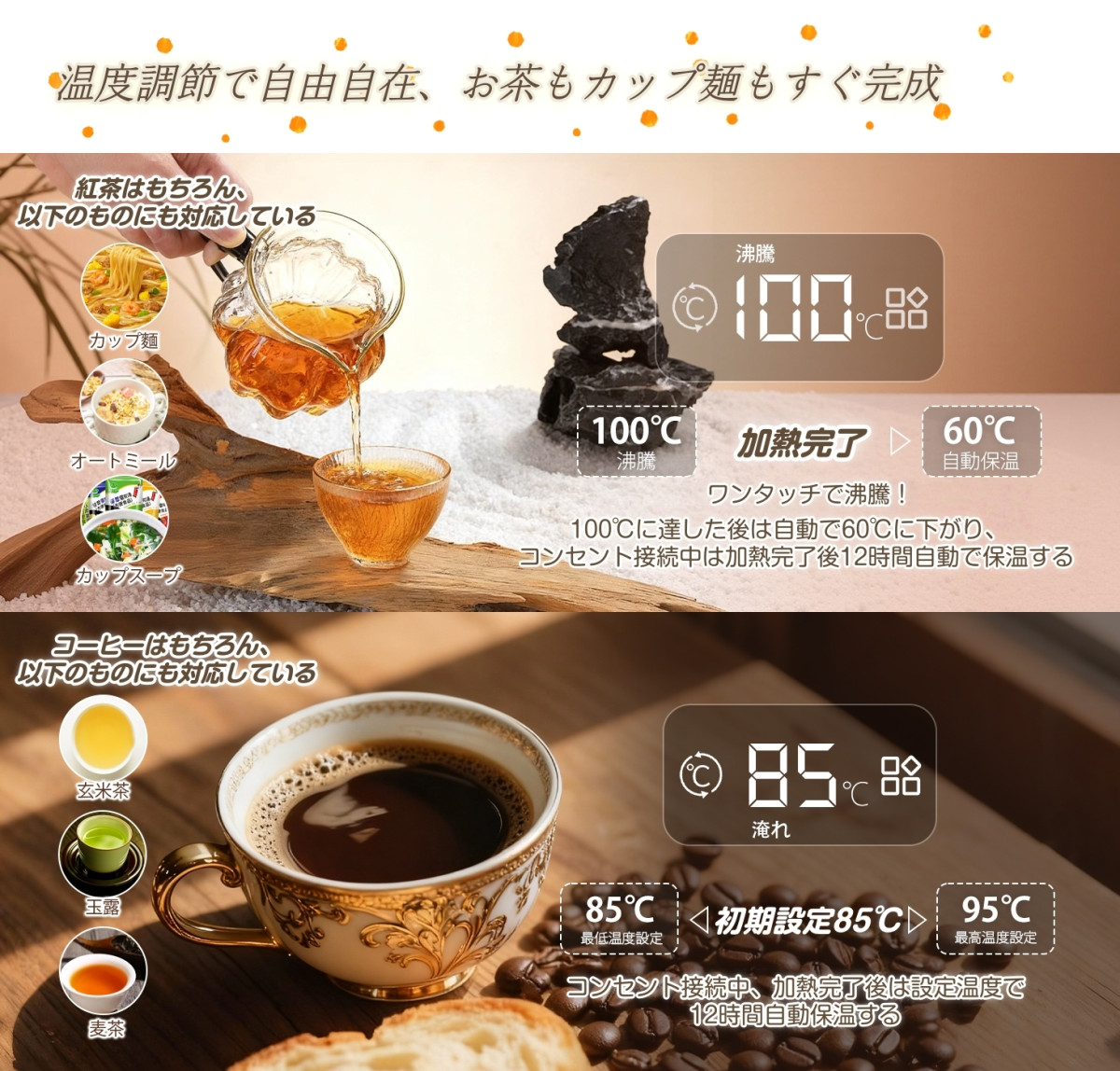 電気ケトル ポータブル トラベルケトル Type-C給電で保温 2WAY給電 ...