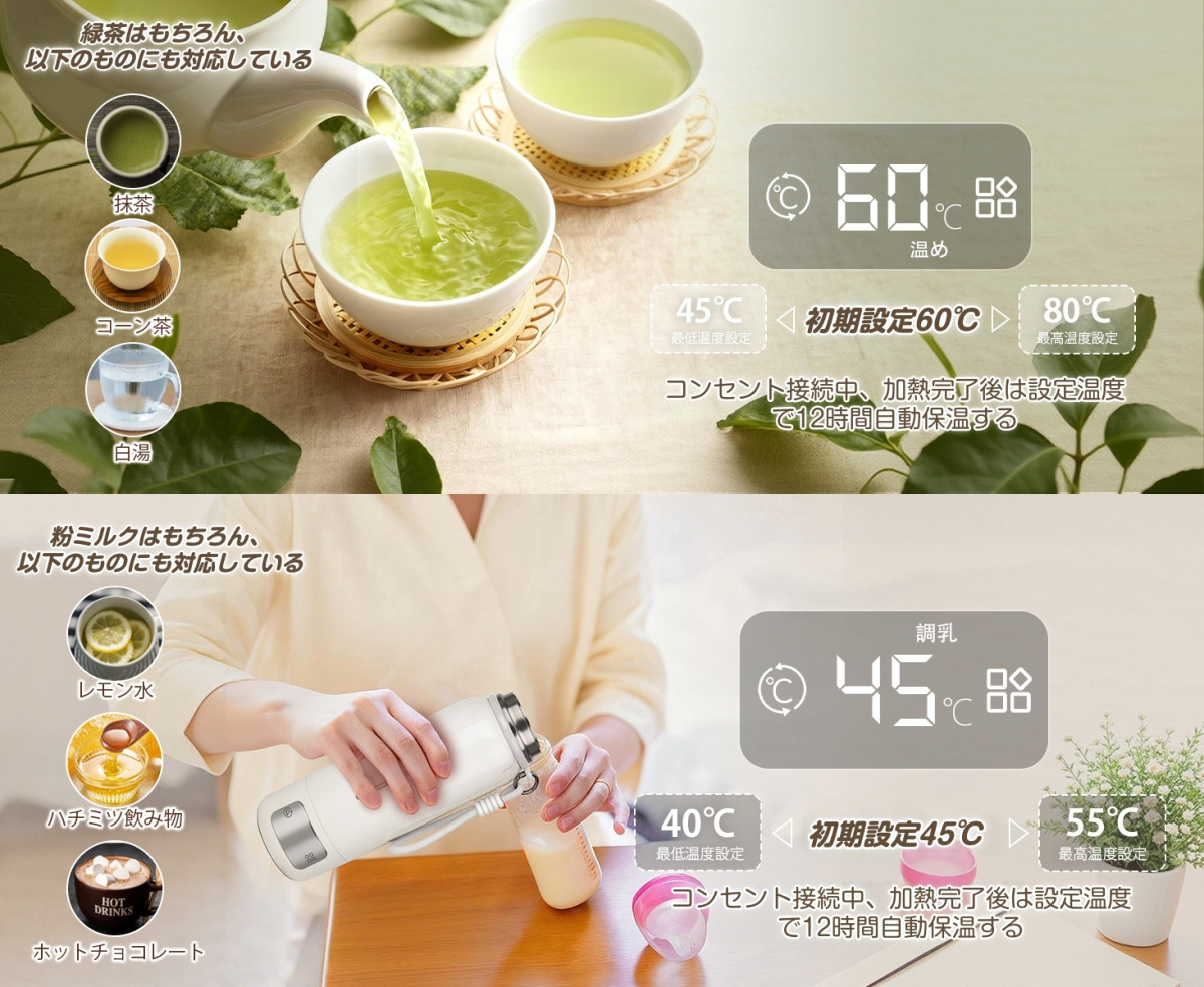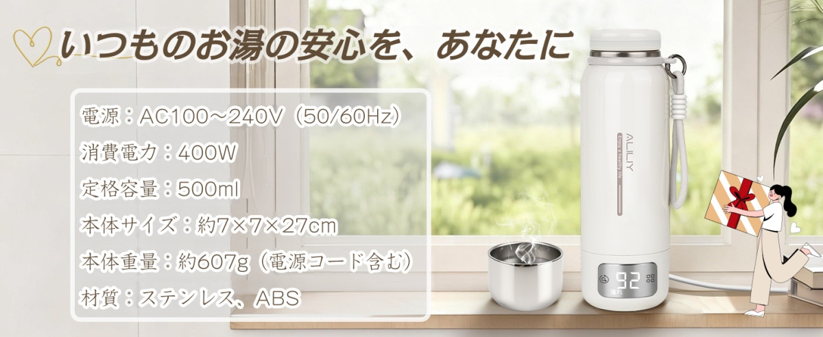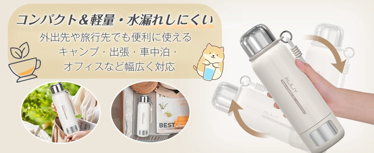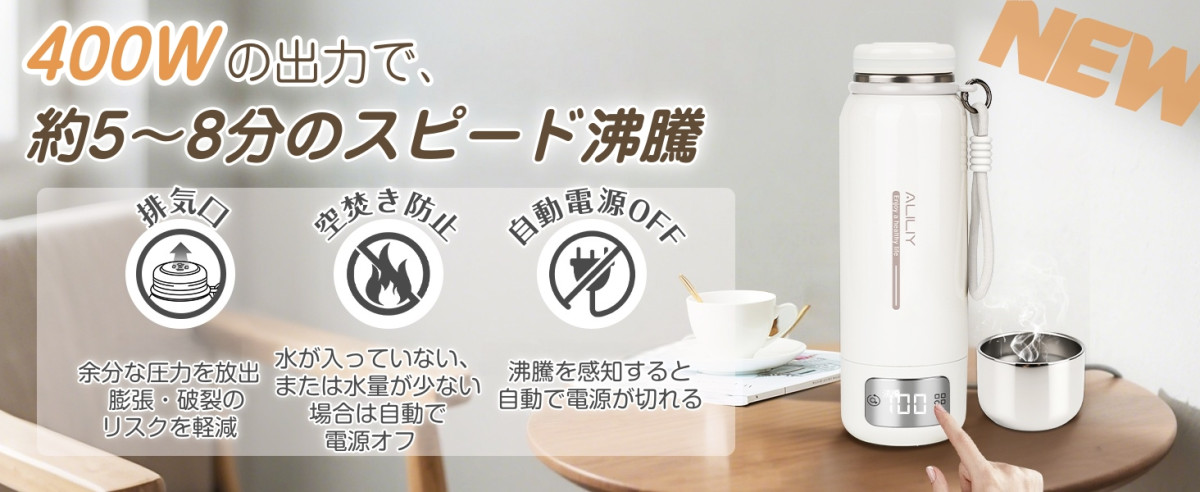 漏れない 携帯ポット 空焚き防止 水筒 電気温水カップ PSE認証