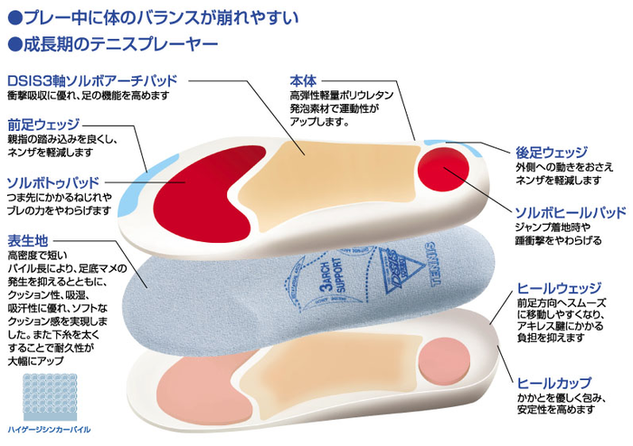 SORBO ソルボインソール ソルボテニス 急な方向転換、ダッシュ&ストップ時の衝撃吸収・動作バランスを整え、足のトラブルを予防し瞬発力もアップ